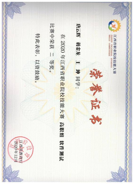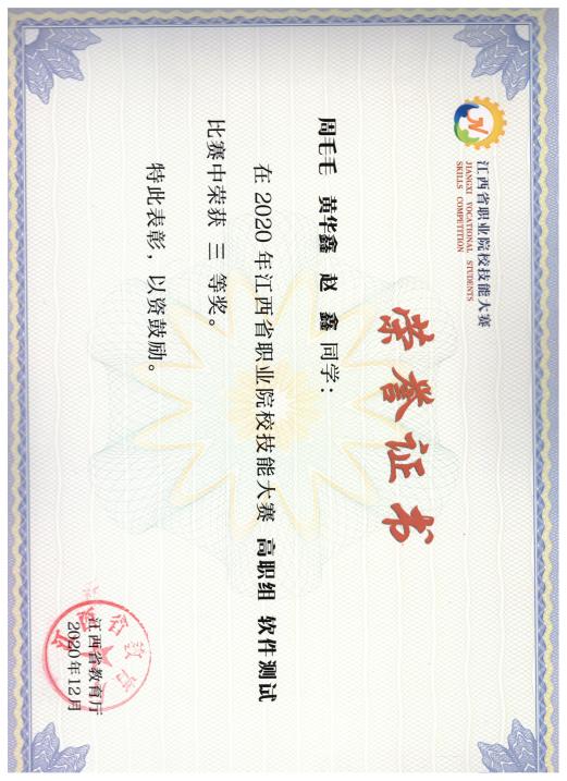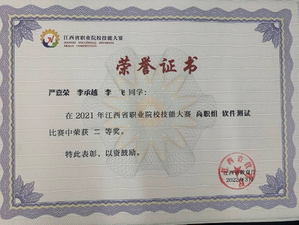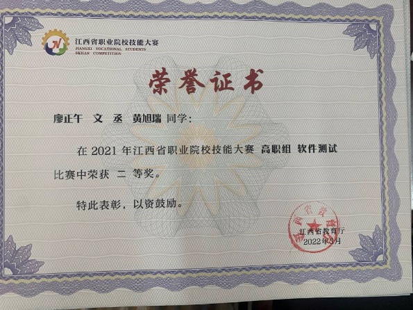 江西省职业院校技能大赛软件测试赛项二等奖