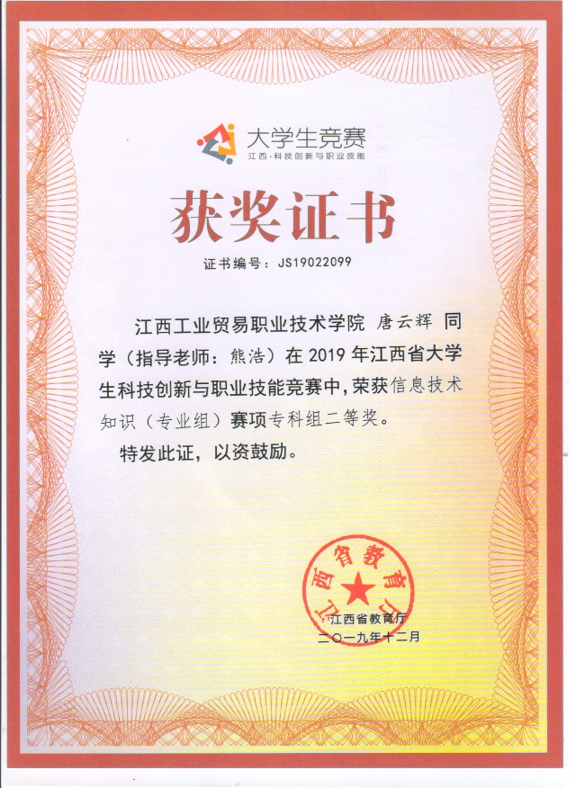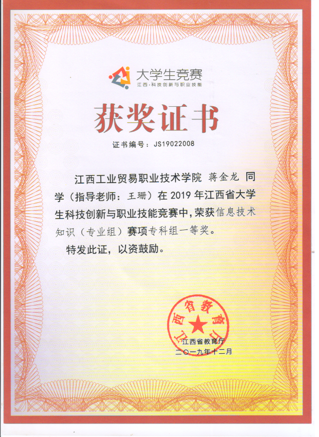 江西省大学生科技创新与职业技能竞赛一等奖、二等奖