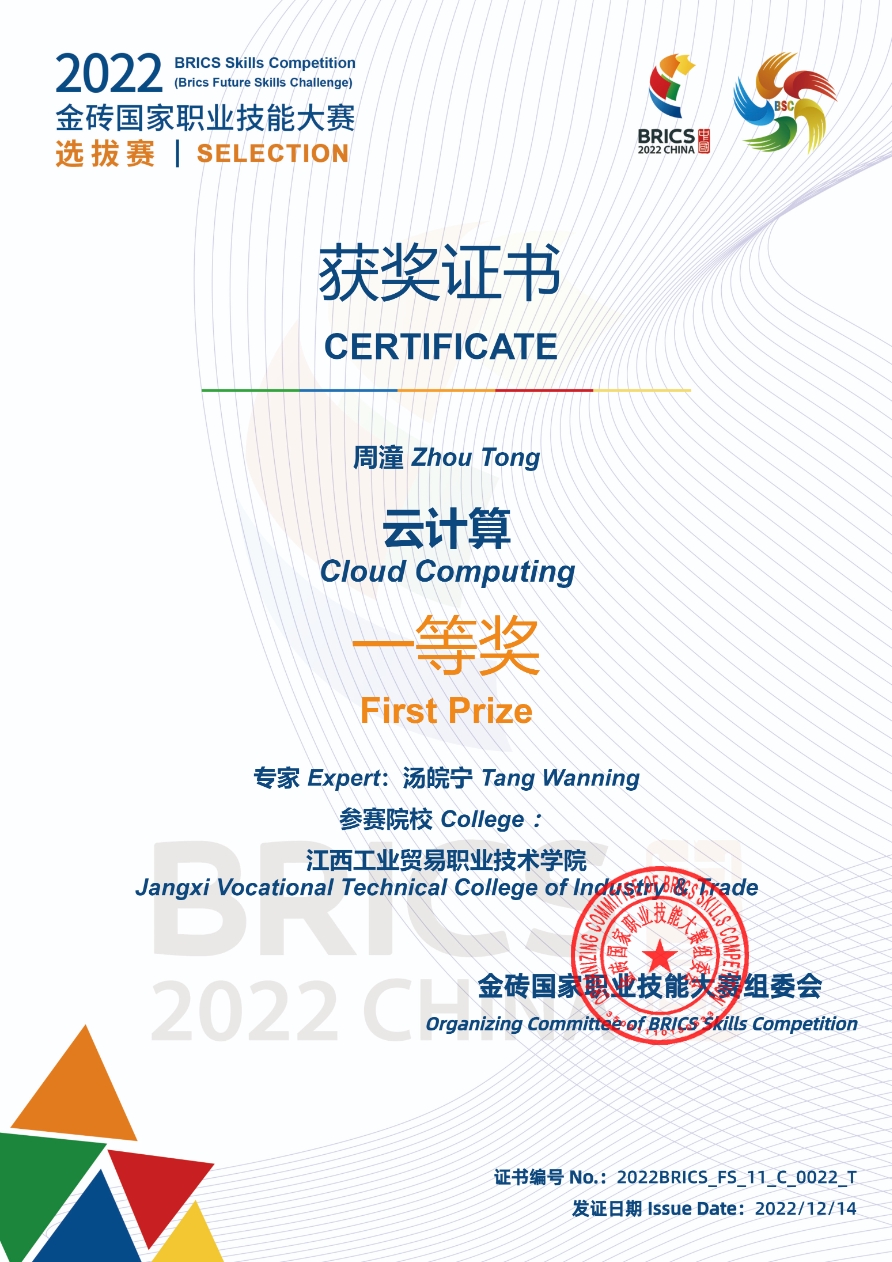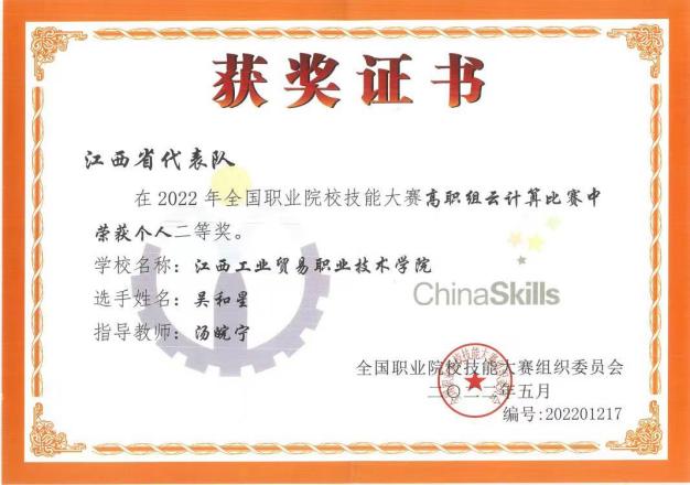 2022年江西省”天工杯“劳动和技能竞赛——职业院校教师数字经济职业技能竞赛云计算赛项二等奖