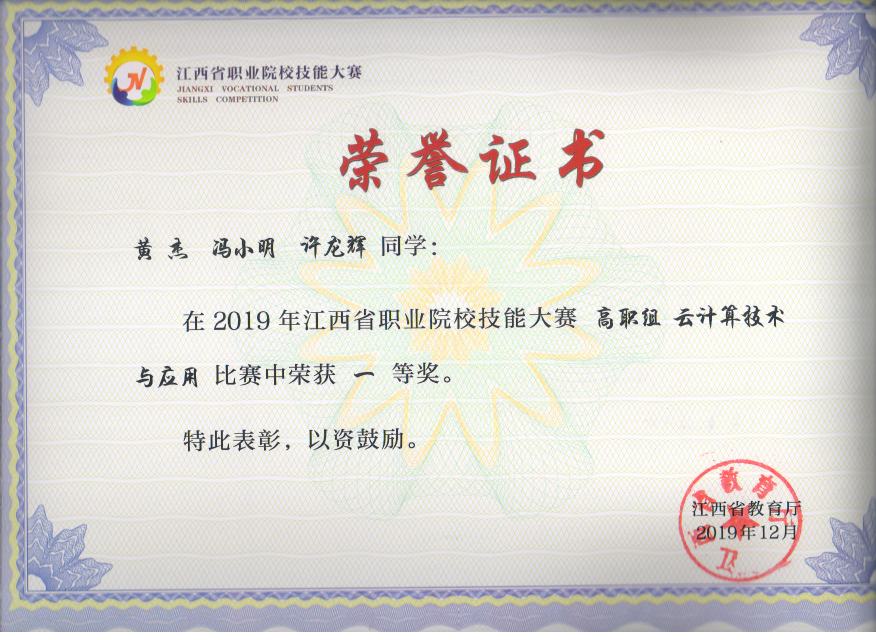 2019年江西省职业院校技能大赛云计算赛项一等奖