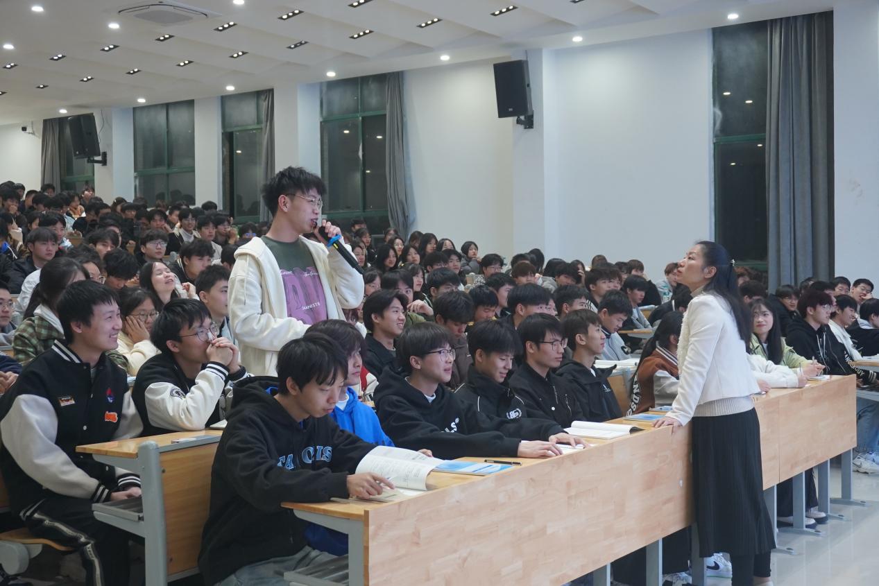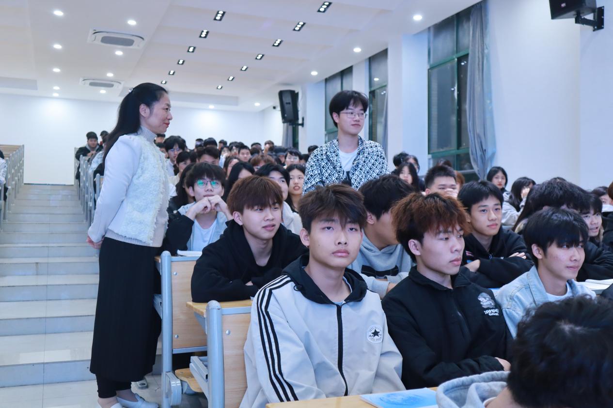 授课过程中,陶晓峰与同学们亲切互动,一起分析“发展与安全”之间的关系,她指出发展和安全犹如车之两轮、鸟之两翼。牢牢守住安全发展的底线,是构建新发展格局的重要前提和保障。她强调青年大学生要自觉提升维护国家安全的意识,把维护国家安全作为首要任务,要充分认识到国家安全不仅仅是保卫国家不受外部威胁,更包括维护内部稳定、促进经济发展、保障人民安居乐业等各方面的工作。