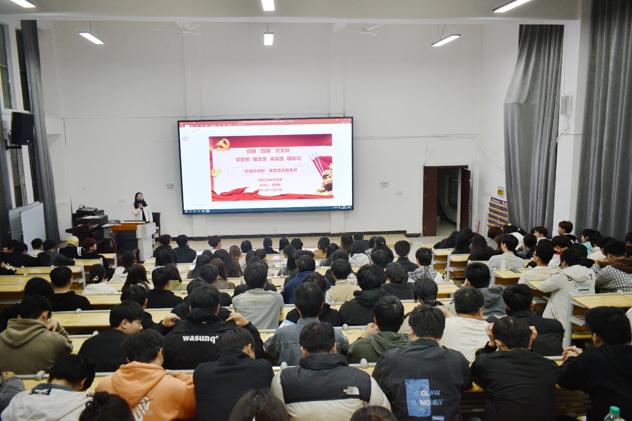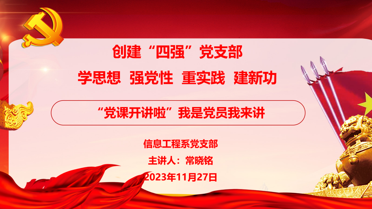 为全面贯彻党的二十大精神,深刻认识国家安全面临的复杂严峻形势,正确把握重大国家安全问题,加快推进国家安全体系和能力现代化,以新安全格局保障新发展格局,努力开创国家安全工作新局面。2023年11月27日晚7点,信息工程系党支部在志学楼214开展创建“四强”党支部学思想、强党性、重实践、建新功“党课开讲啦”我是党员我来讲——践行新时代文明实践宣讲形势政策主题宣讲活动,此次党课主题为《以新安全格局保障新发展格局》,主讲人为信息工程系常晓铭,21大数据技术2班、22电子商务中高职对接1班、22电子商务中高职对接2班、22软件技术4班全体同学参加此次党课学习。