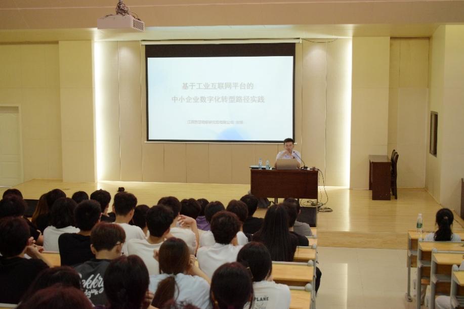 为帮助学生了解物联网领域的前沿知识技术,了解企业用人需求,拓展专业知识视野,促进校企资源共享和合作,2024年6月12日,信息工程系在志学楼504举办物联网应用技术专业讲座。江西省智慧物联研究院有限公司经理章博受邀为我系学生作题为“基于工业互联网平台的中小企业数字化转型路径实践”的专题讲座。