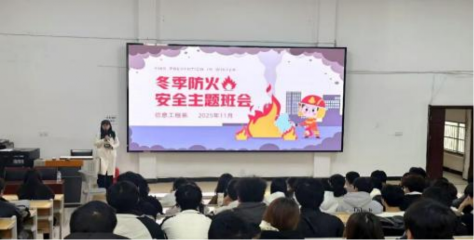 冬季天干物燥,是火灾事故的高发期,校园宿舍作为学生集中居住场所,消防安全更是重中之重。为切实强化学生的消防安全意识,提升应急处置与自救互救能力,有效防范化解冬季校园火灾风险,11 月 14 日—11 月 19 日,信息工程系组织各班级集中开展“冬季消防安全 ”主题班会,为学生送上了一堂干货满满的消防安全“必修课 ”。
