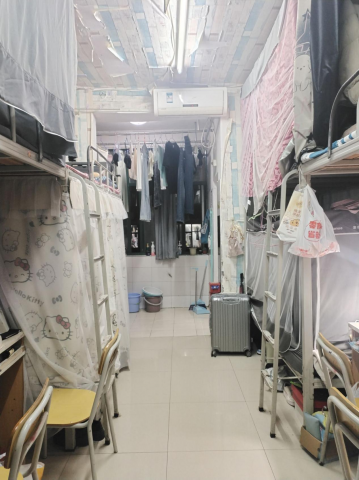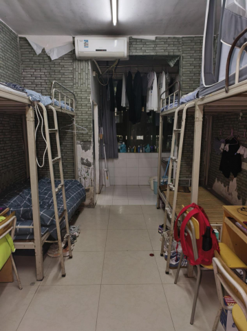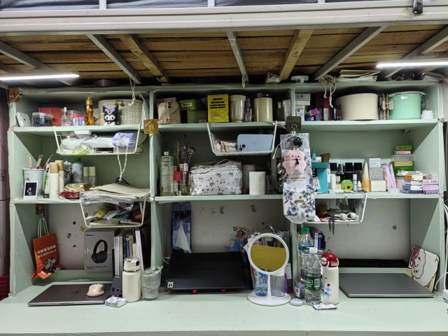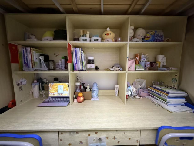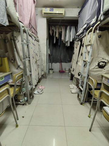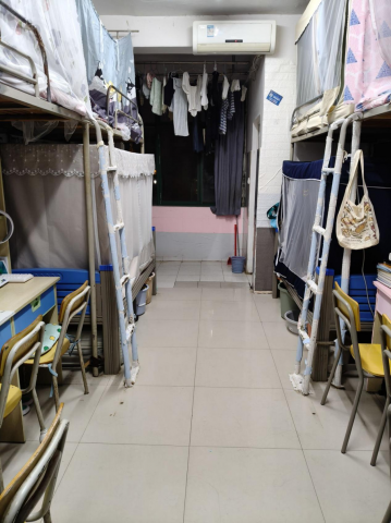 床铺整洁、物品摆放有序,连洗漱用品都收纳得井井有条,那份简洁清爽的感觉特别治愈。