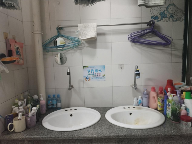 宿舍虽小但整洁温馨,看得出你们把共同的小家经营得井井有条!洗手间的节水标语和细心维护的细节,更展现了你们的责任感与好习惯,给你们点个赞!