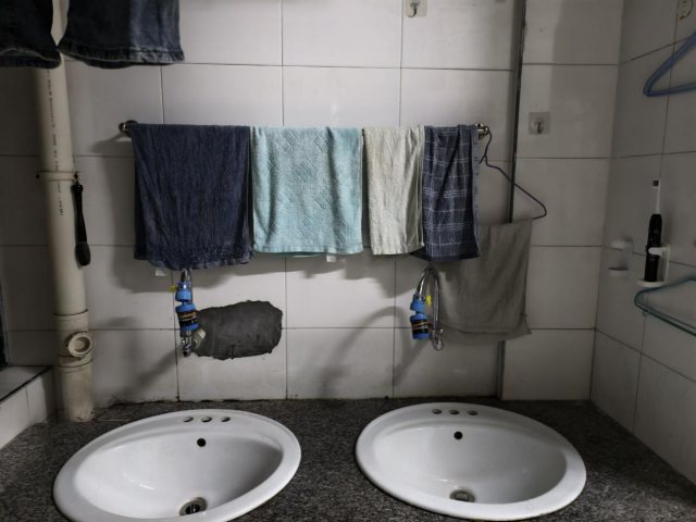 洗漱用品整齐排列,毛巾悬挂有序,过道虽窄却畅通无阻,每件物品都安放得恰到好处。