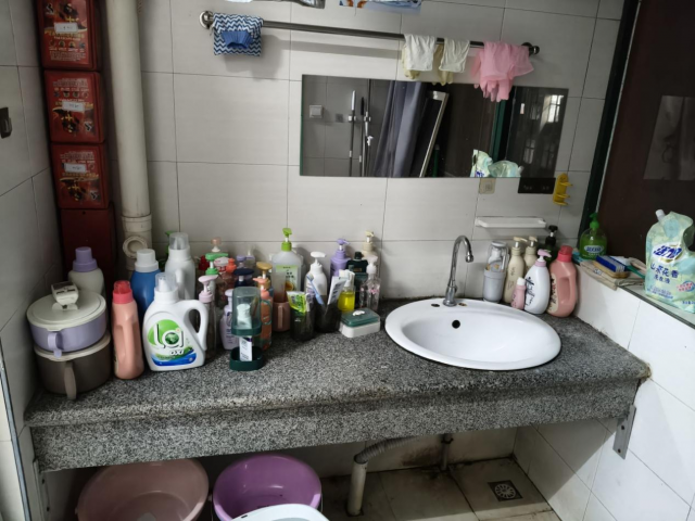 墙上整齐晾挂的衣物、分类放置的水桶和清洁工具,处处流露着细心规划的生活智慧。