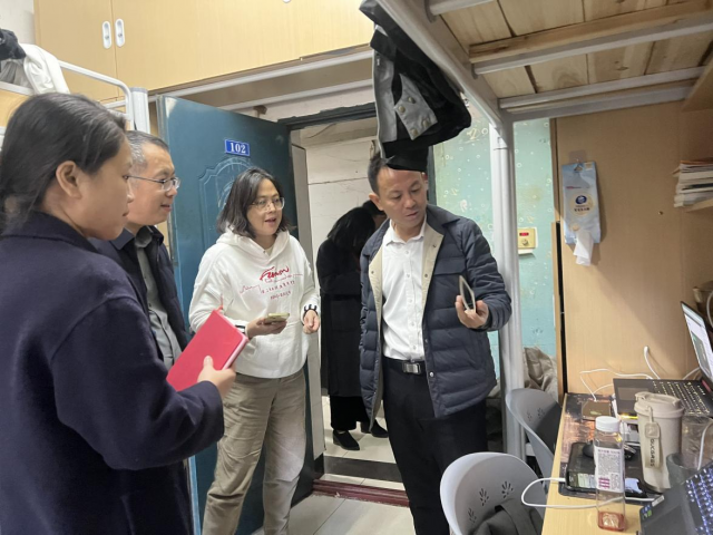 走访期间,刘国红副院长不仅关切地查看同学们的住宿环境,更与学生们亲切交谈,细致询问大家期末阶段的学习安排、生活状况与实际困难。他耐心聆听了学生们对宿舍设施、管理服务等方面的意见与建议,并表示学院将认真研究、积极协调,不断优化住宿条件与管理水平。在寒冷的冬日里,此次深入一线的走访,不仅传递了学院对学生的深切关怀,也有效拉近了师生之间的距离,增强了学生的归属感与安全感。